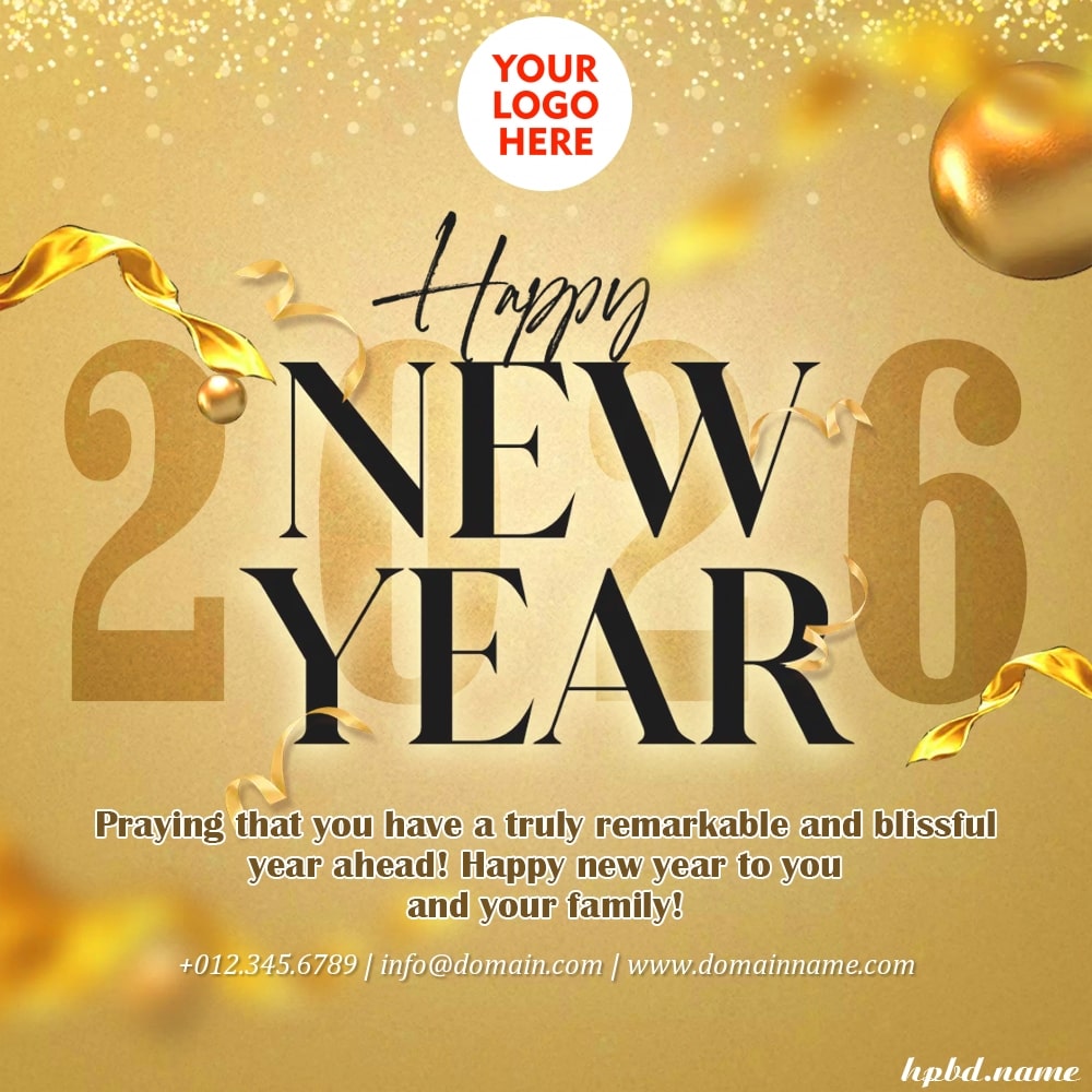 Luxury Golden Happy New Year 2026 Wishes With Company Logo